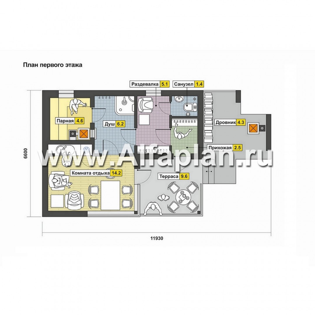 Проект бани с террасой, дровником и барбекю, дом для отдыха, дача - технические характеристики